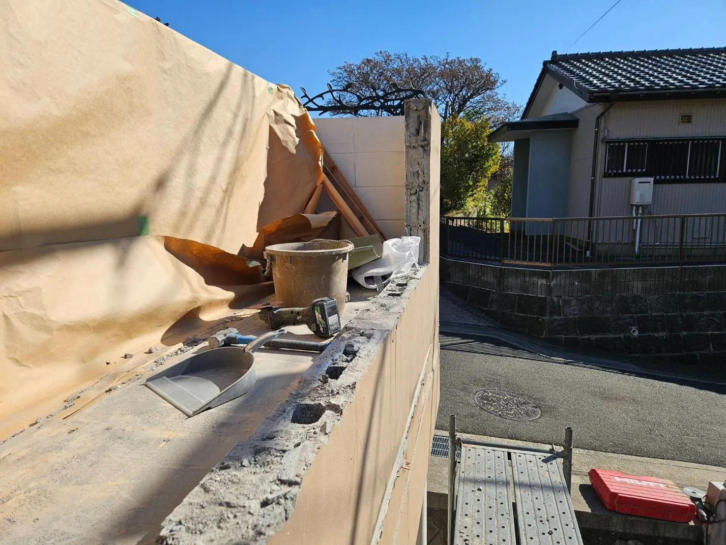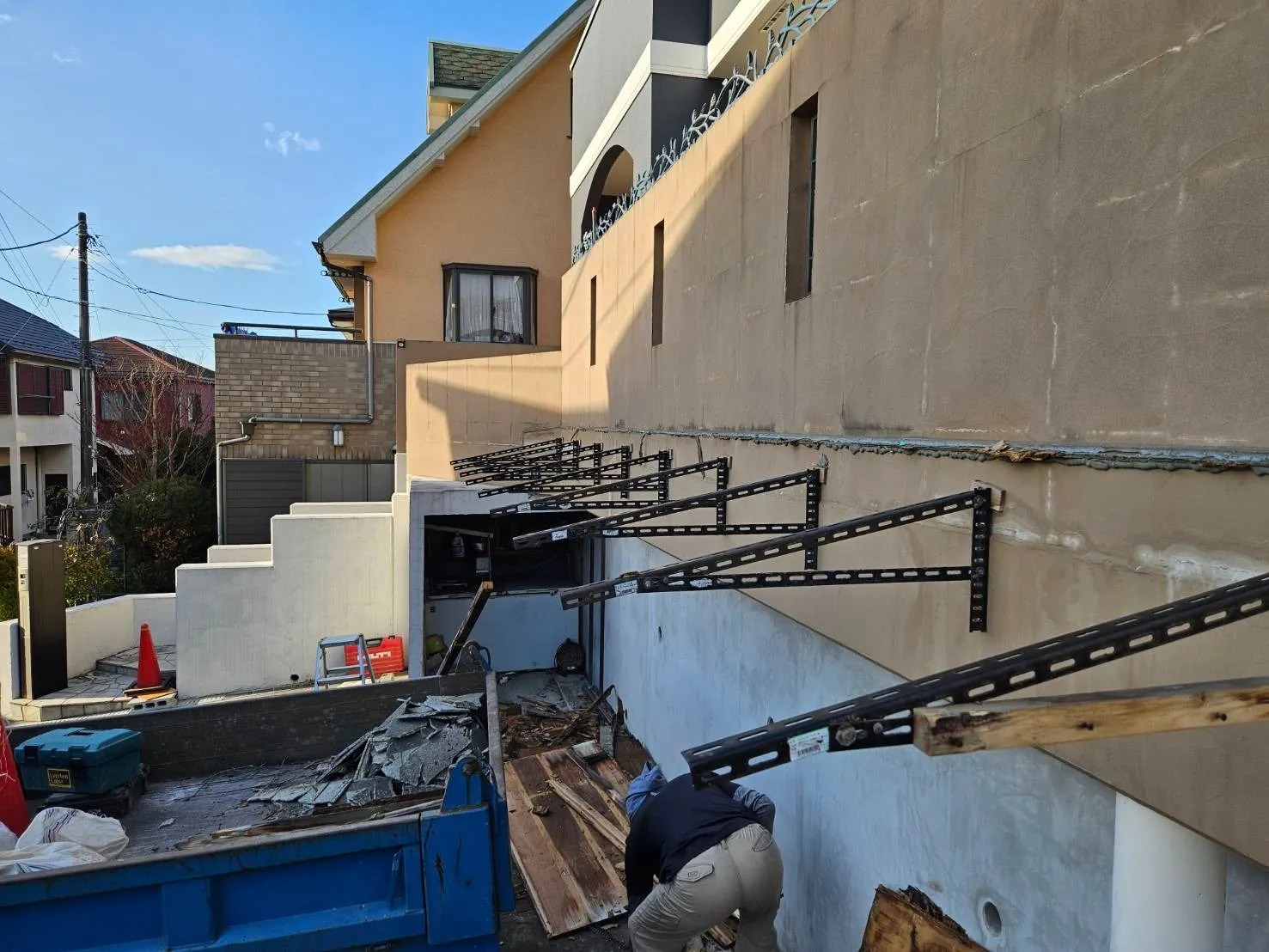 擁壁下の庇を解体していきます
