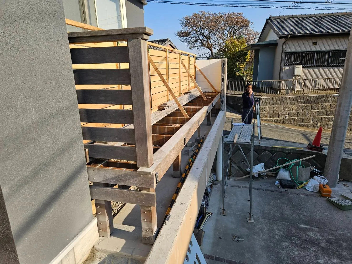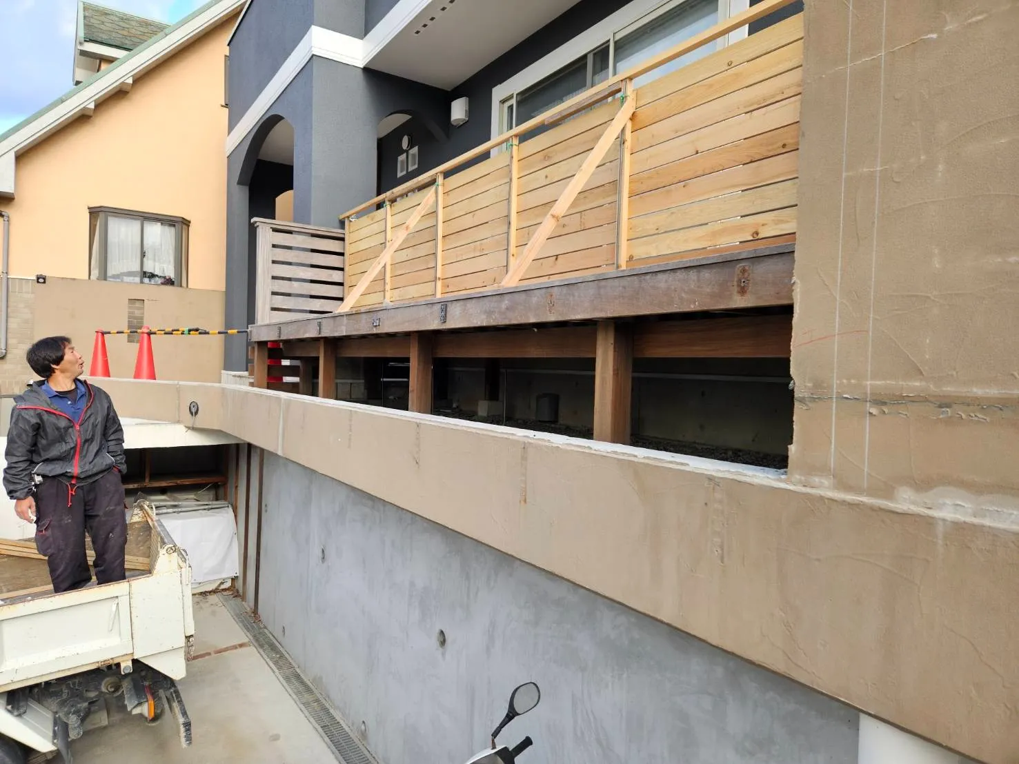 擁壁解体後、デッキを復旧させます