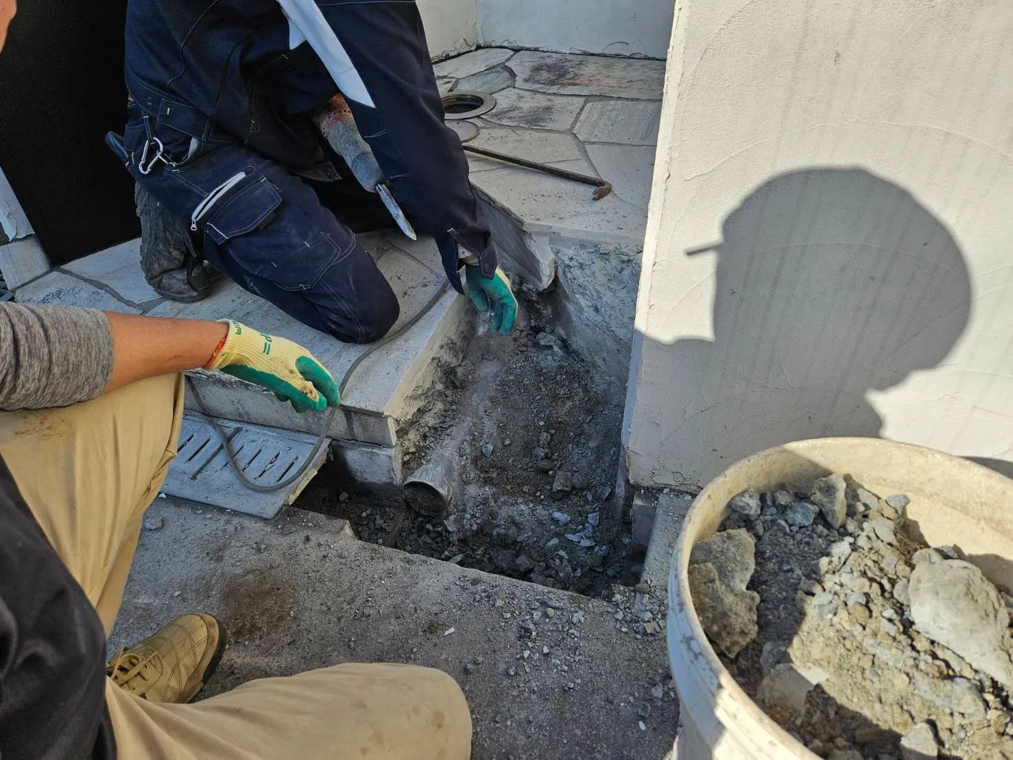 排水管がギリギリのところに有りましたが、躱せそうです