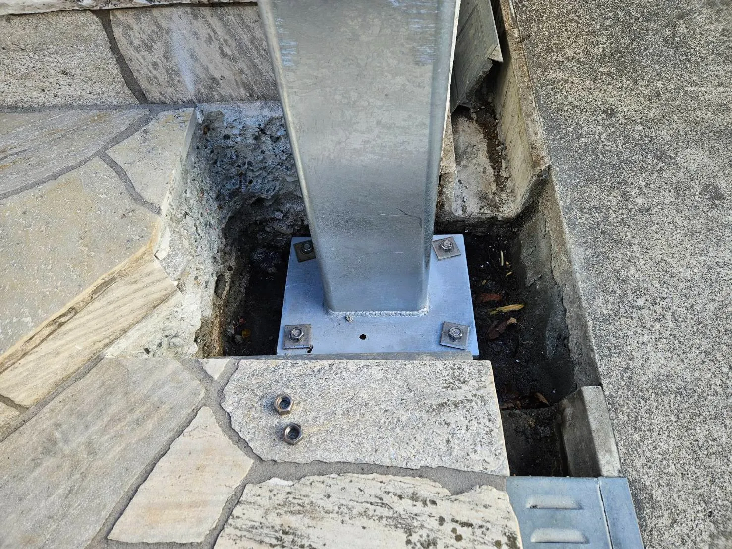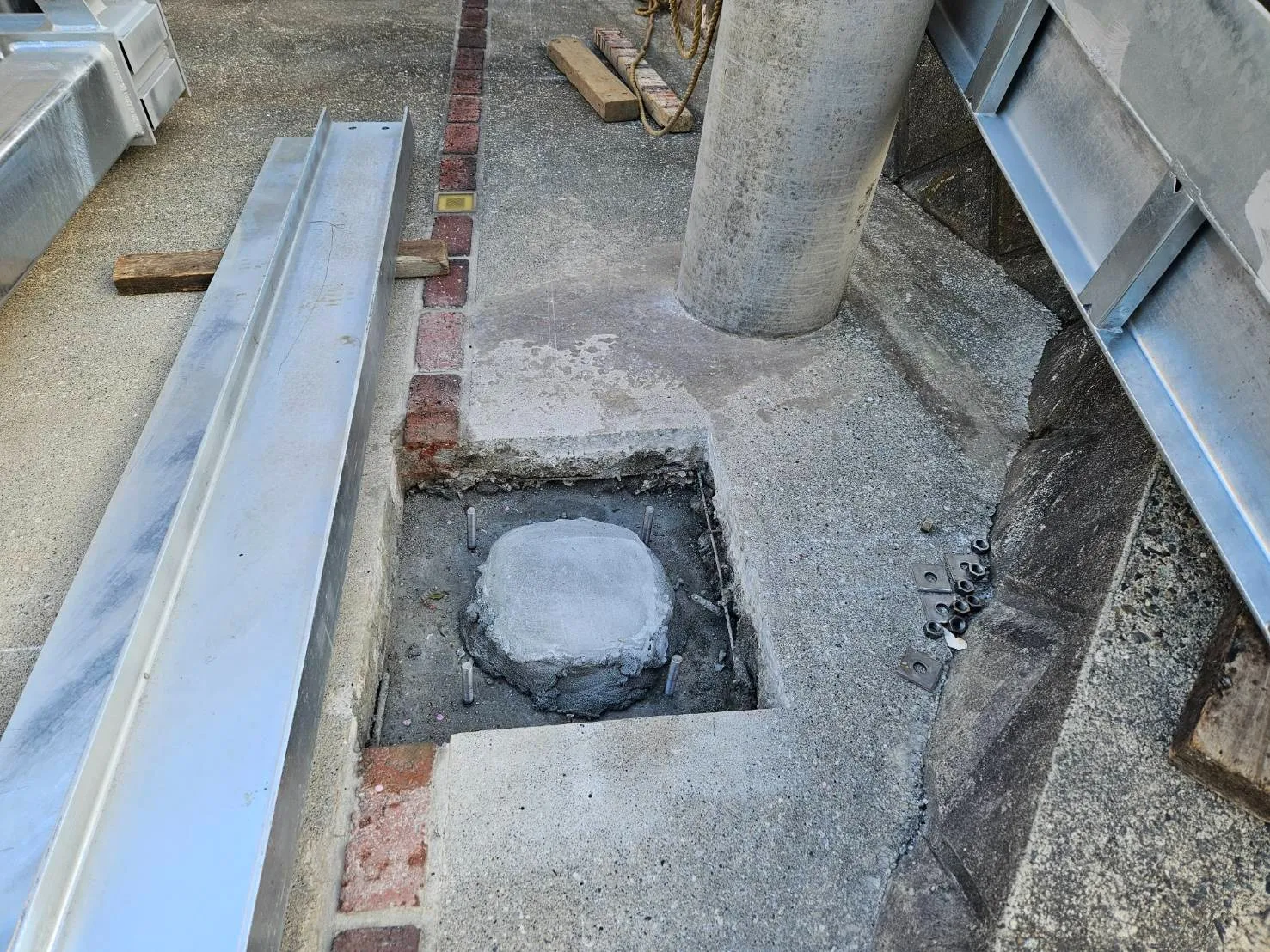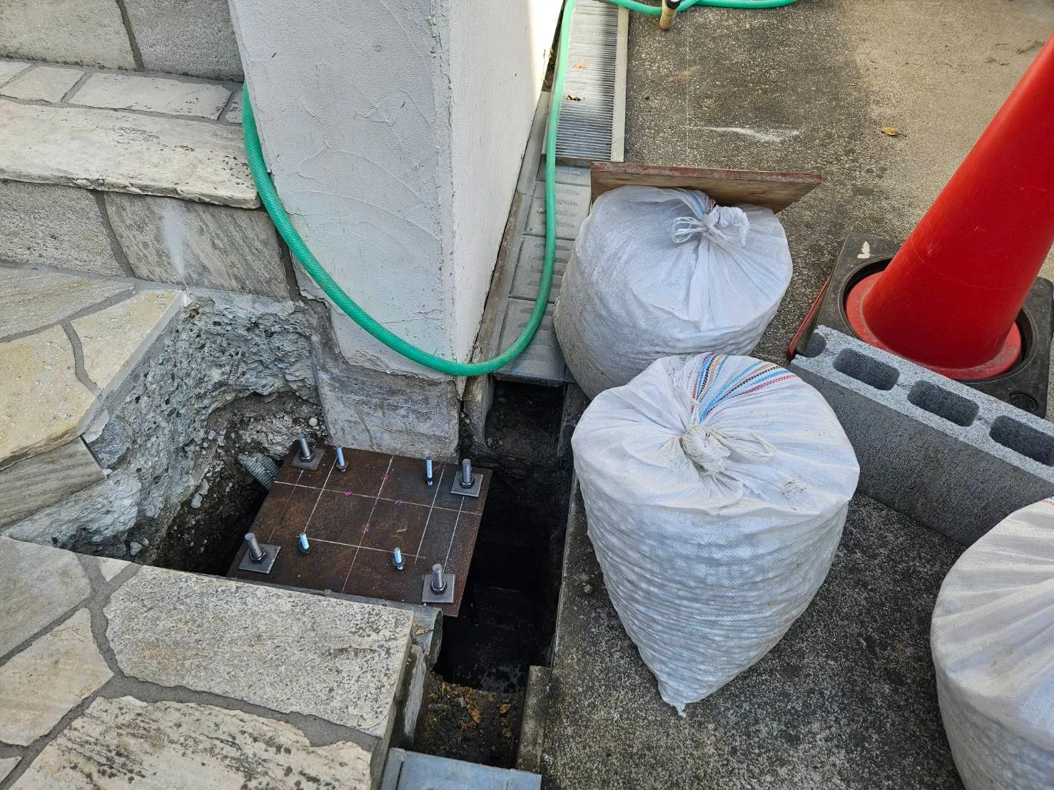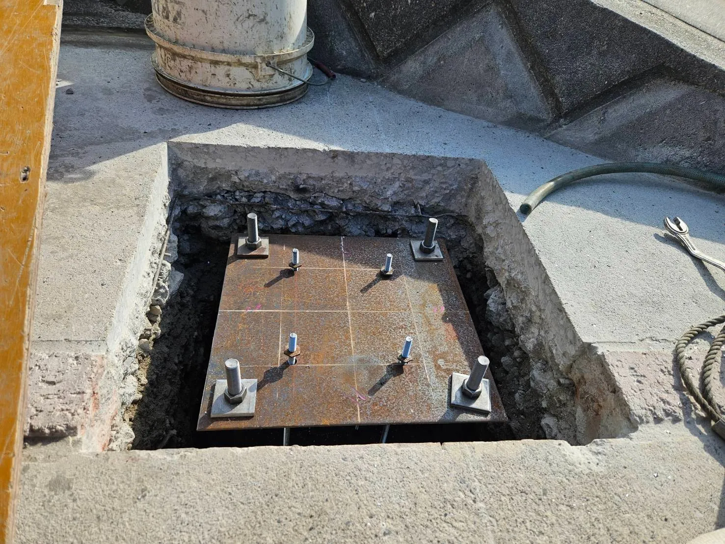 モルタルを打設して、アンカー用のプレートを外します