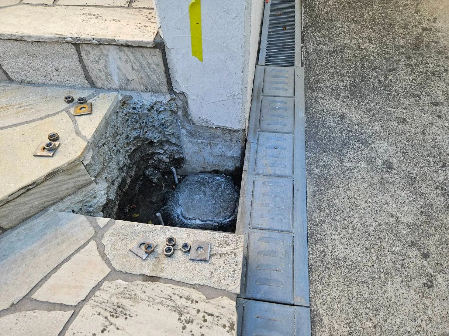 階段部の排水管をぎりぎり躱しました
