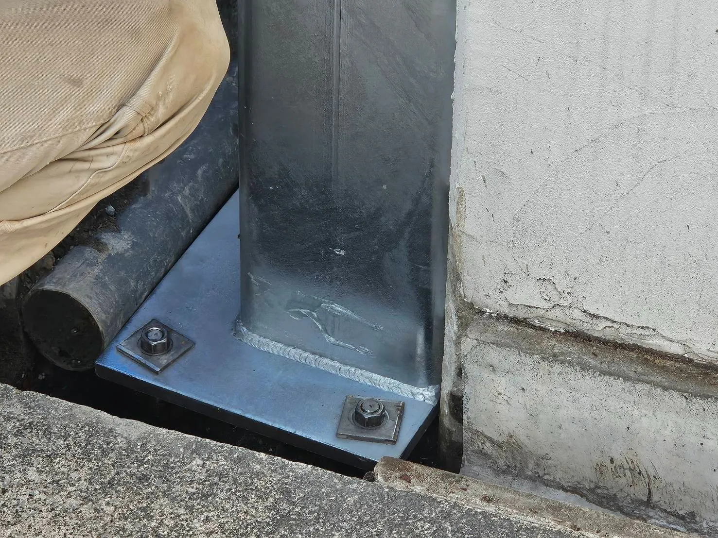 4本のアンカーで鉄骨柱を固定します