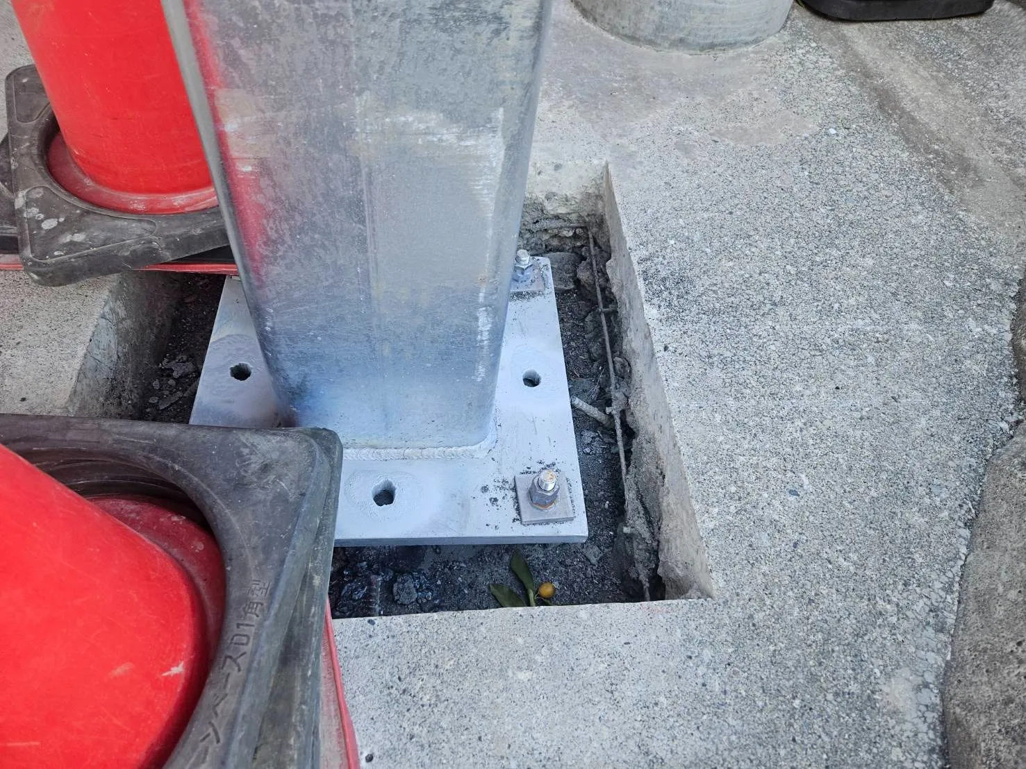 柱を取り付けるためのアンカーを、プレートを利用して取り付けます