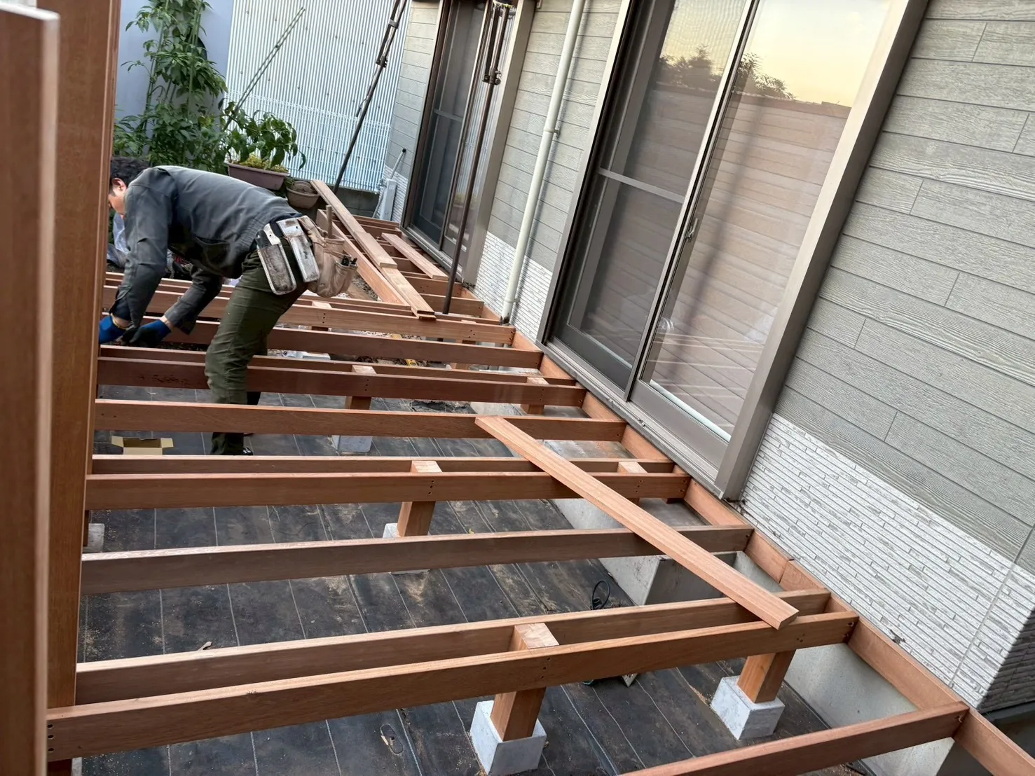 新しくウッドデッキを造作する工事の写真を
